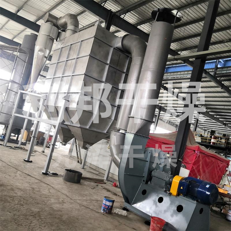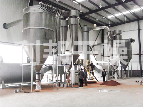 該設備生產能力大,產品質量好,效率高,節能,在一個設備內干燥、粉碎、篩分一次性完成,消除環境污染
